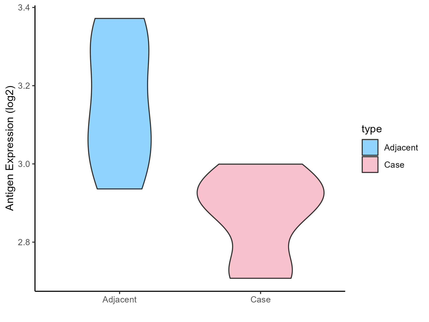 | The Expression Level of Disease Section Compare with the Adjacent Tissue |
